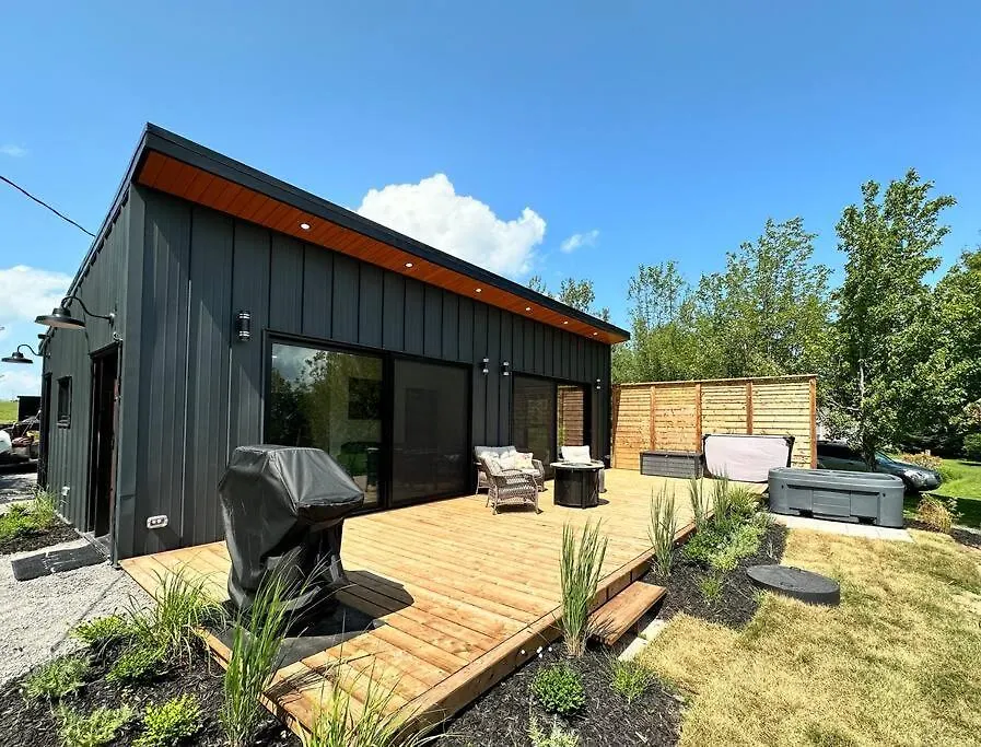 Les clients pourront profiter d'un patio et d'un espace de repas, ainsi que de la climatisation pour leur confort. Outre d'un canapé, l'intérieur dispose d'une cheminée en pierre et des fenêtres insonorisées. Dotée d'une douche à l'italienne et de toilettes séparées, la salle de bains est également équipée d'un sèche-cheveux et des draps de bain.
